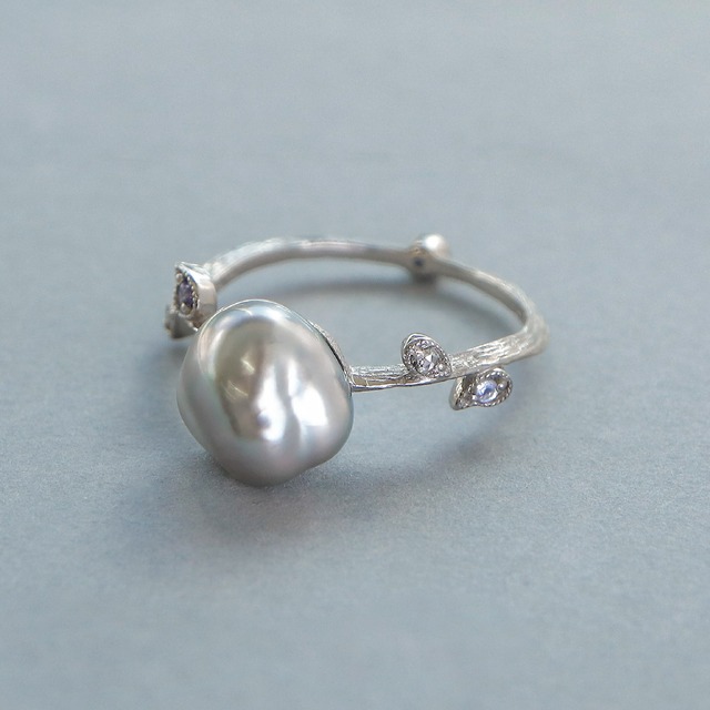 【オンランショップ限定・先行販売】 2/26~3/26まで 限定品1点もの・ロゼッタスティッラ プラチナ サイズ:11号(初回サイズ直し無料) メイン石:ナンヨウパール(ケシパール) 脇石:タンザナイト/ダイヤ/ローズカットダイヤ/ブルームーンストーン 掌側:ブルーサファイア 品番:0835051