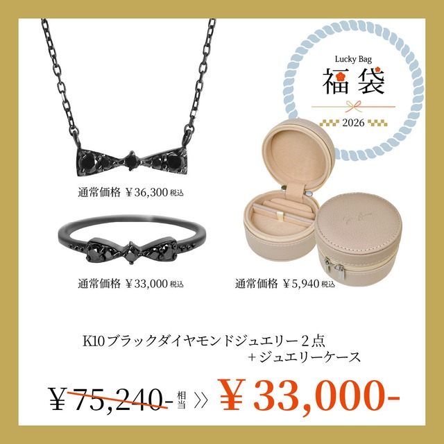 【福袋・57%OFF】 K10ブラックダイヤ ネックレス+リング+ジュエリーケースセット