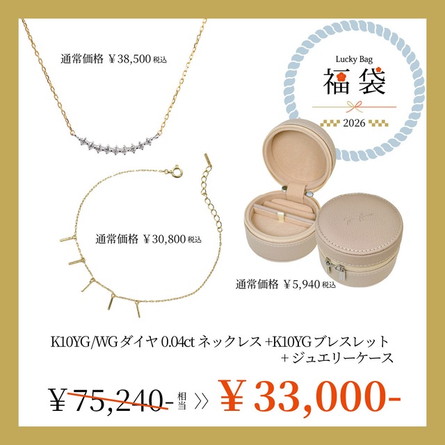 【福袋・56%OFF】K10YG/WGダイヤネックレス+K10YGブレスレット+K10YGダイヤリング+ジュエリーケースセット