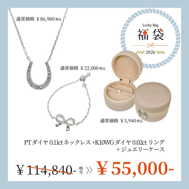 【福袋・52%OFF】PTダイヤネックレス+K10WGダイヤリング+ジュエリーケースセット