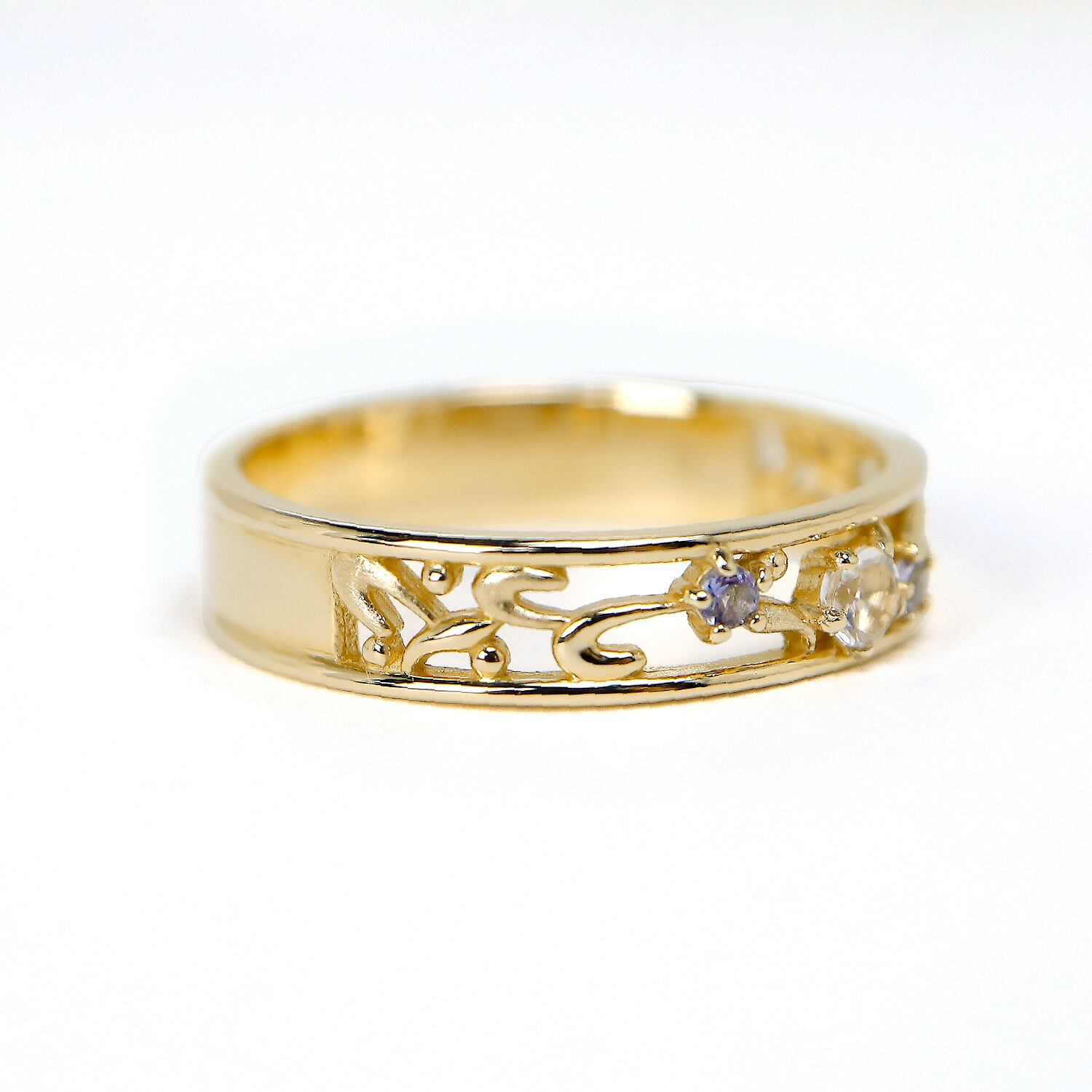 K10YG ラブラドライト/アイオライト/タンザナイト リング