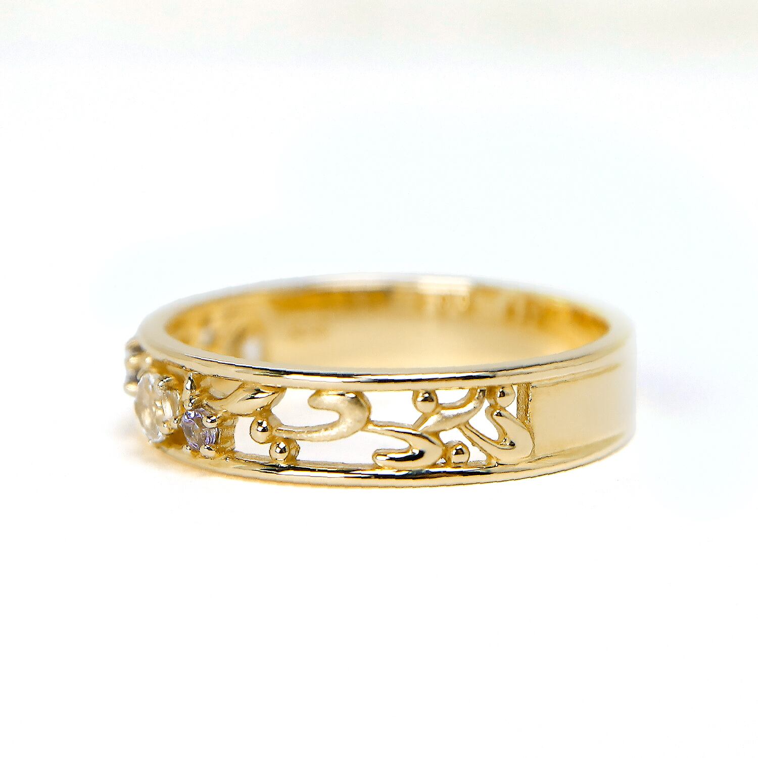 繊細な透かし模様が、時を超える優美さを纏わせるリング。