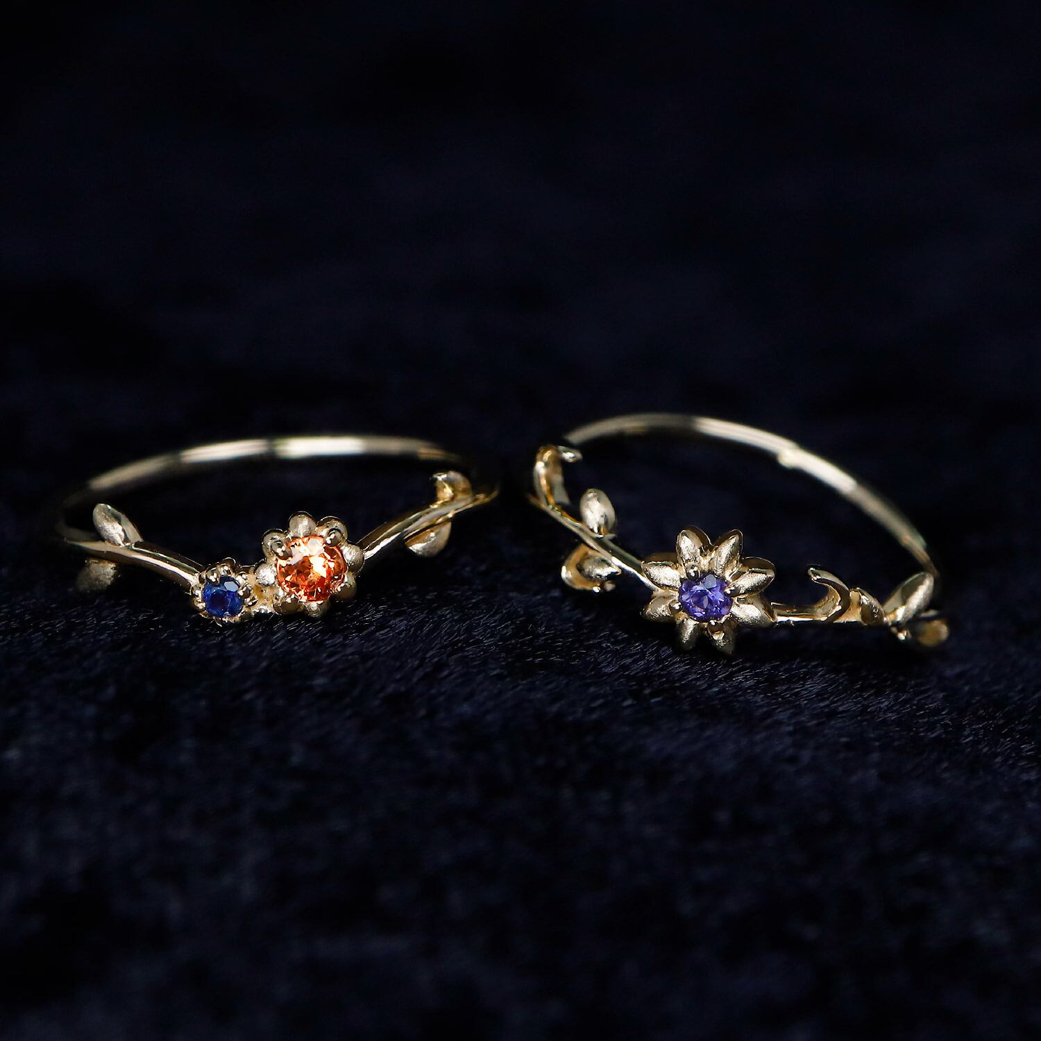 中心には深い青紫のアイオライトをあしらい、知的な輝きを添えました。