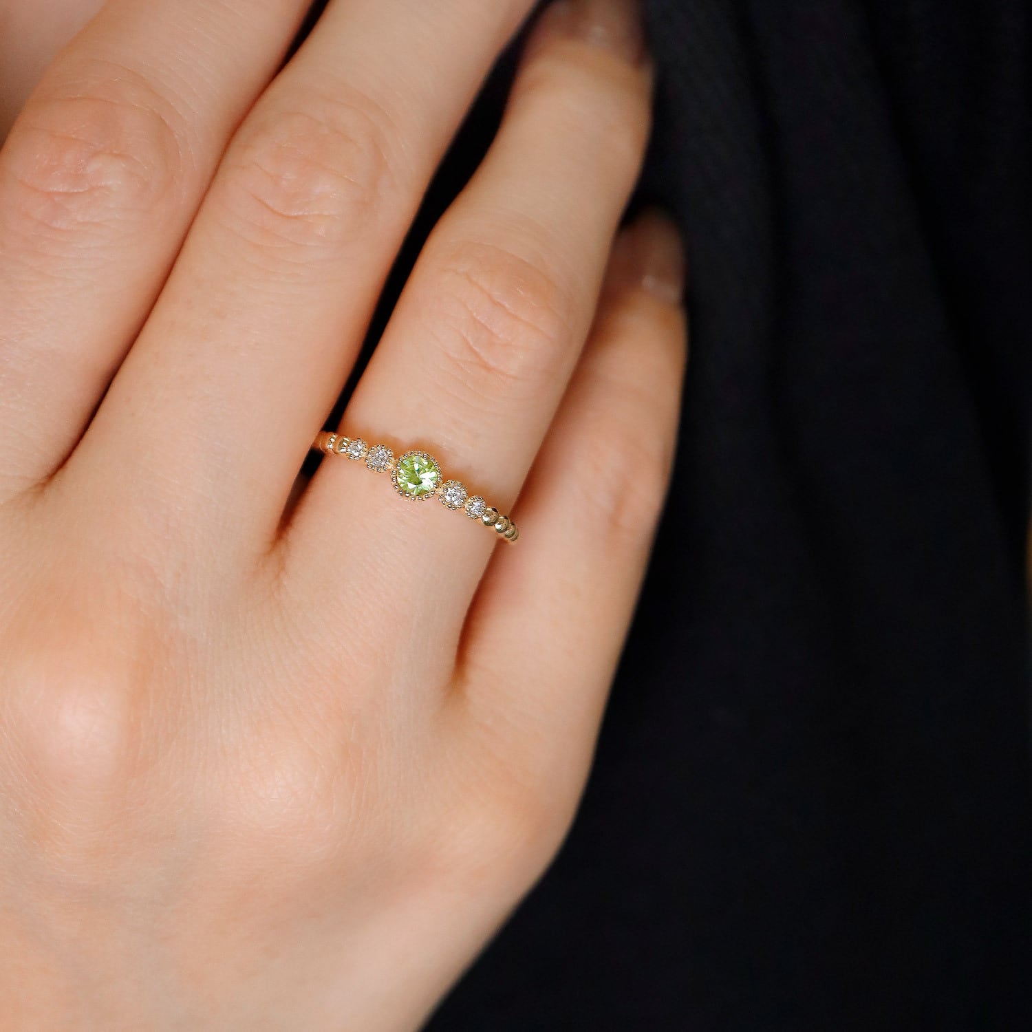 ライトグリーンのスフェーンが手元で華やかに煌めきます。
