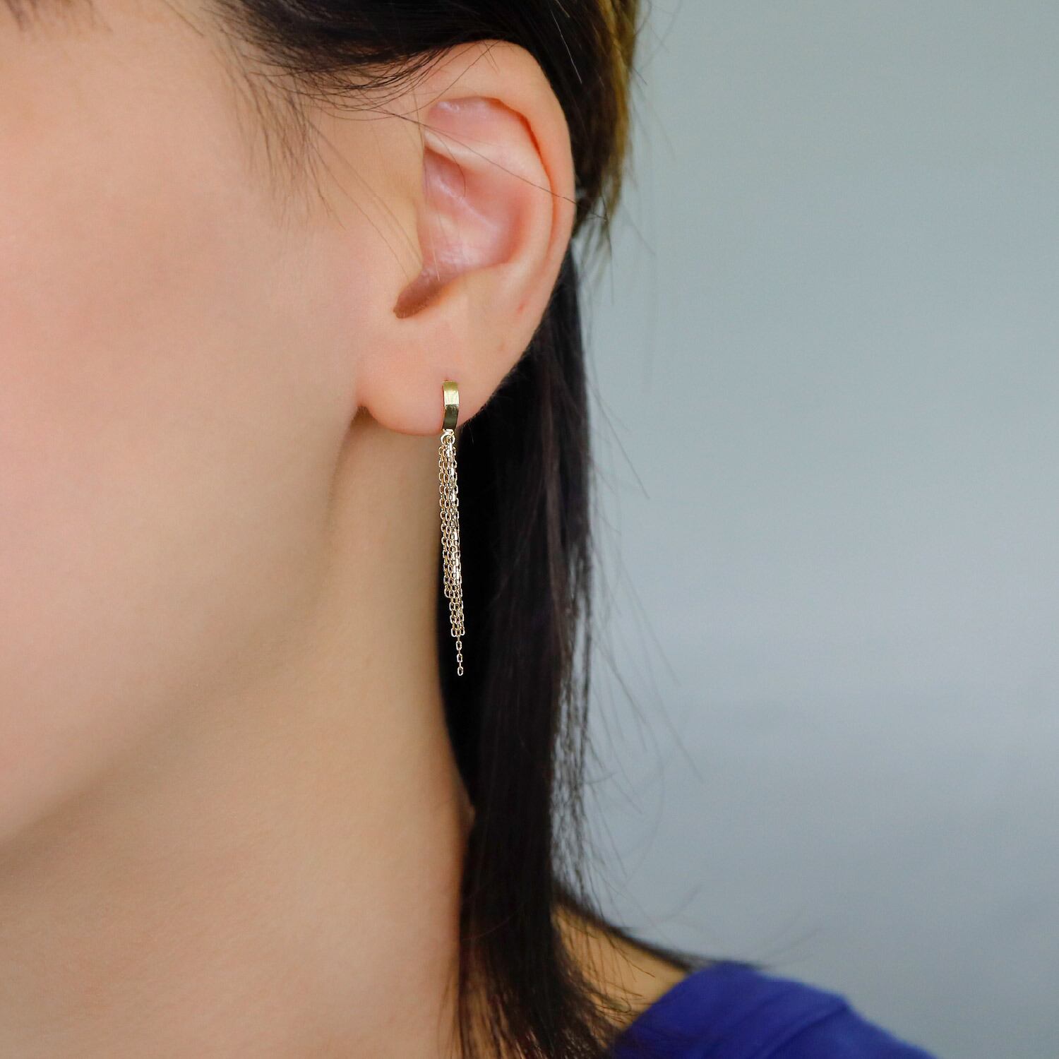 動くたびにきらめく繊細なチェーンが、耳元で軽やかな余韻を描きます。