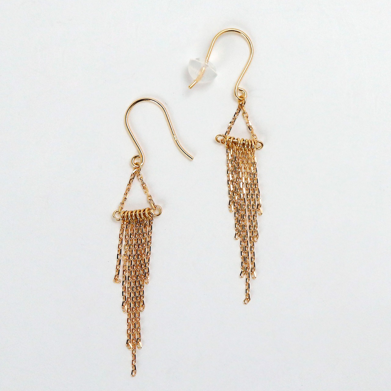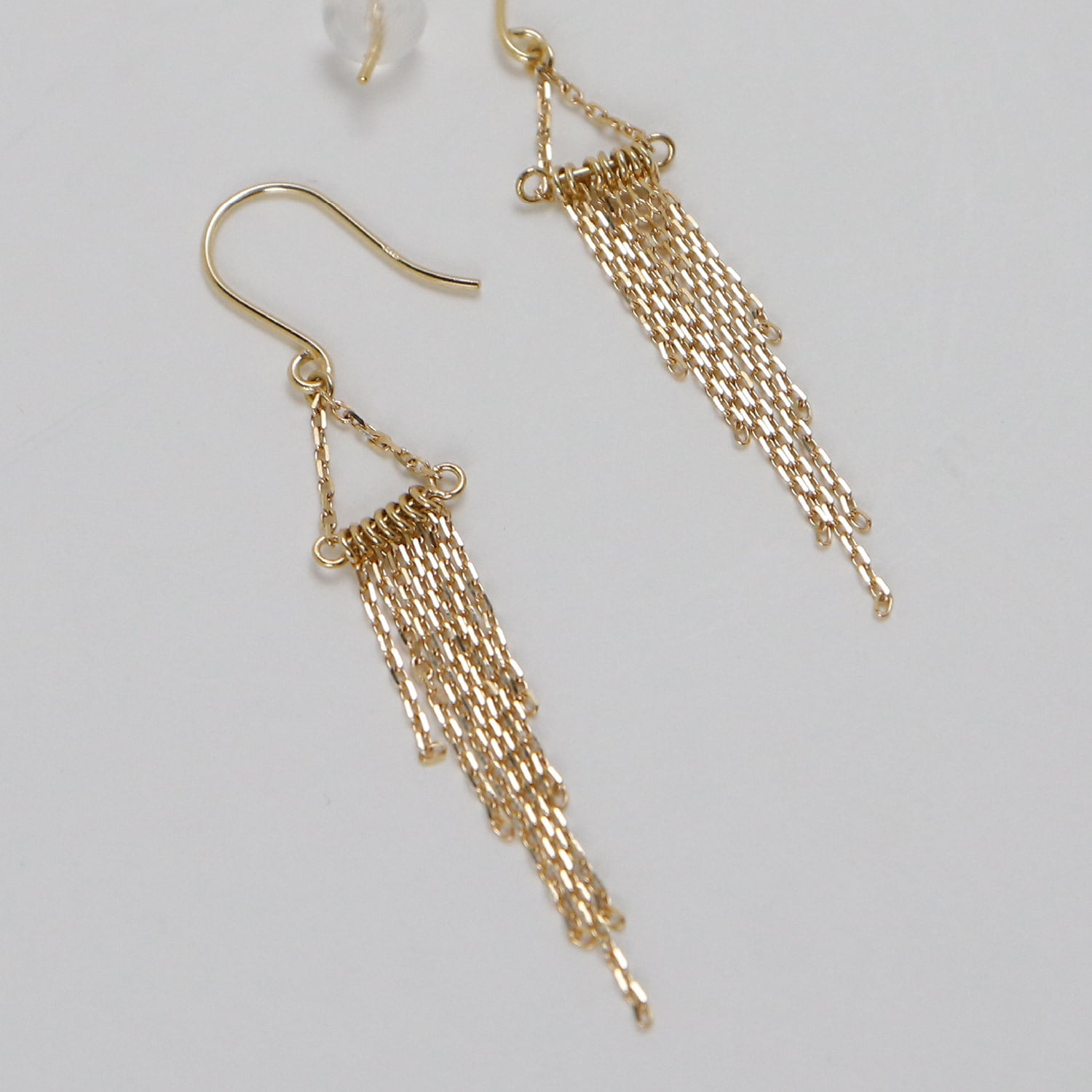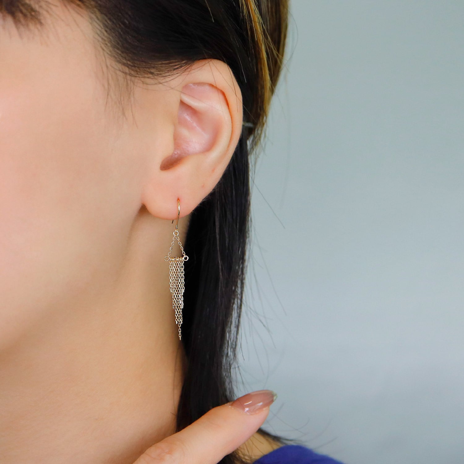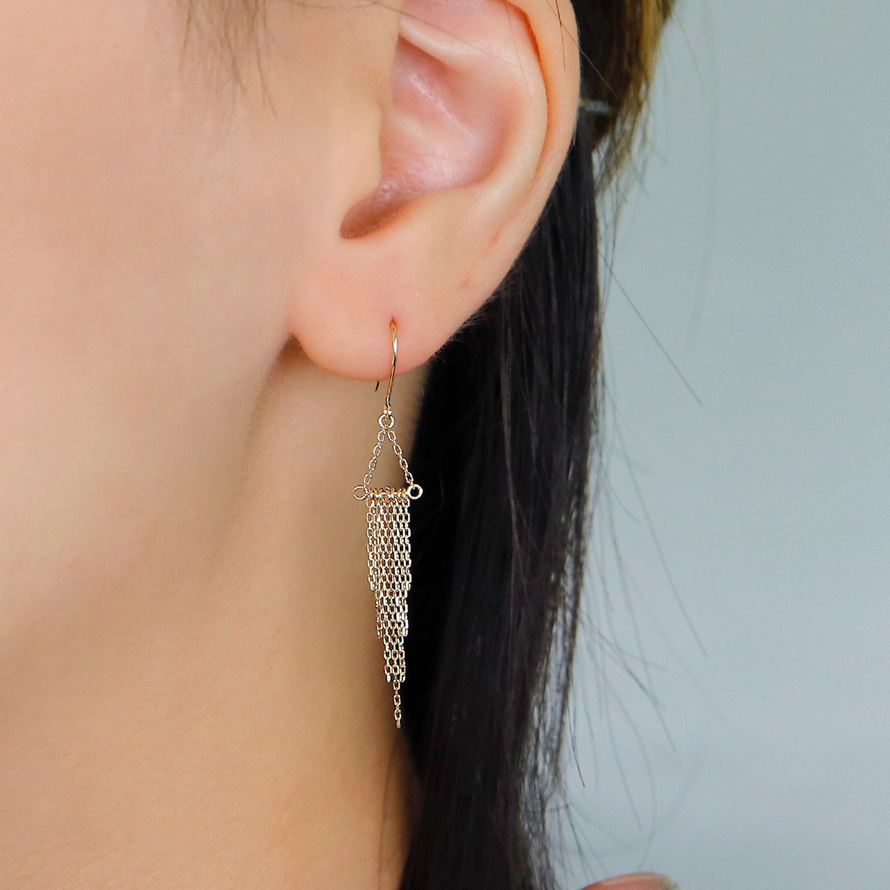 動くたびにきらめく繊細なチェーンが、耳元で軽やかな余韻を描きます。