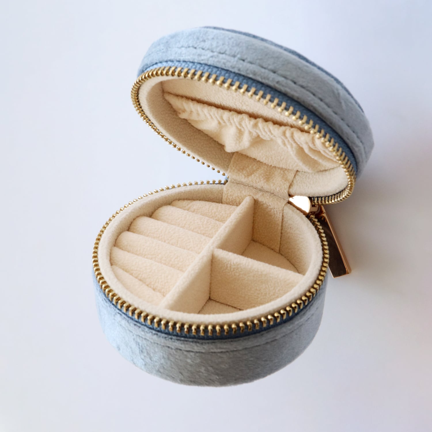 大切なジュエリーを美しく守る、上品なラウンド型ジュエリーケース。