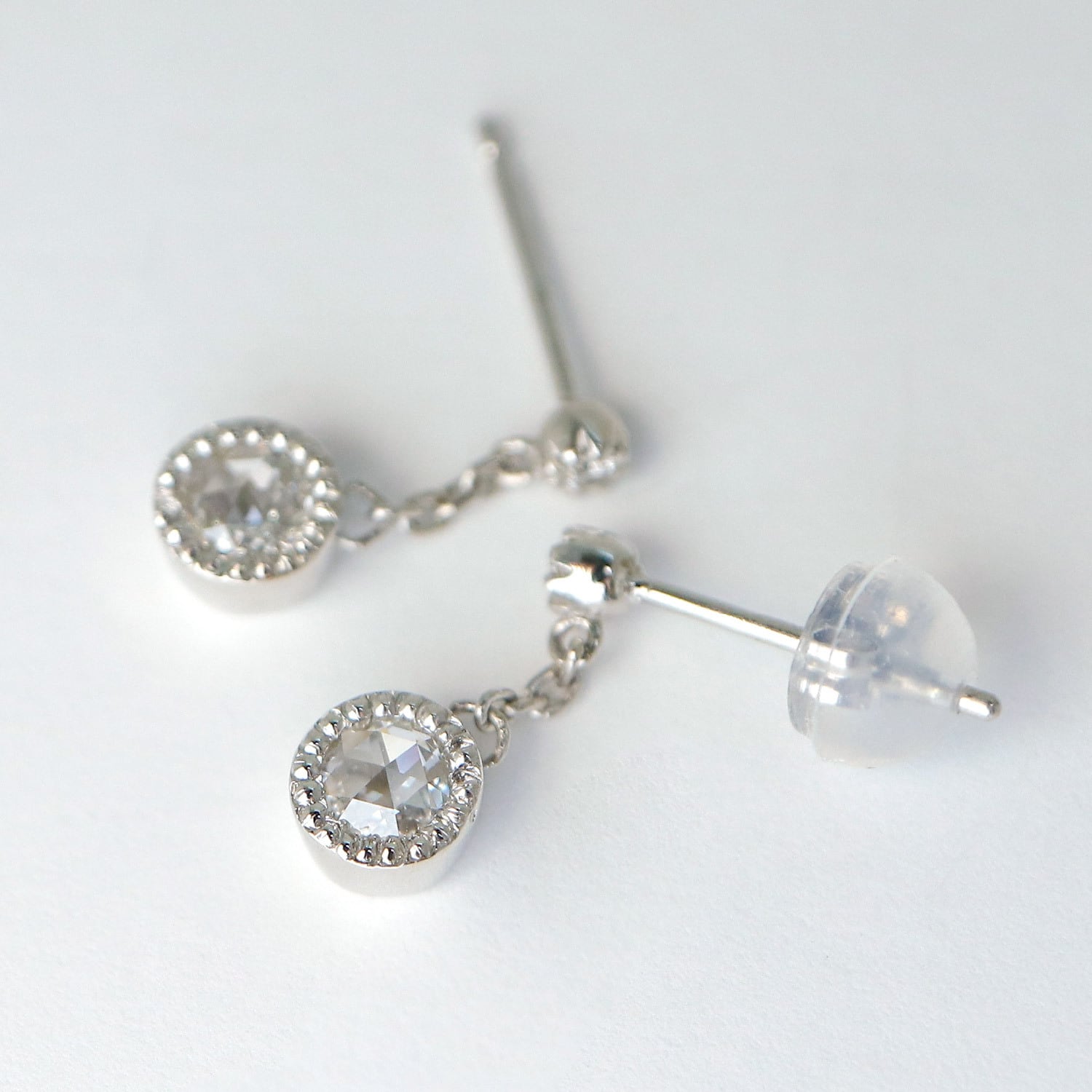 宝石:ローズカットダイヤモンド0.1ct×2/ラウンドブリリアントカットダイヤモンド0.01ct×2