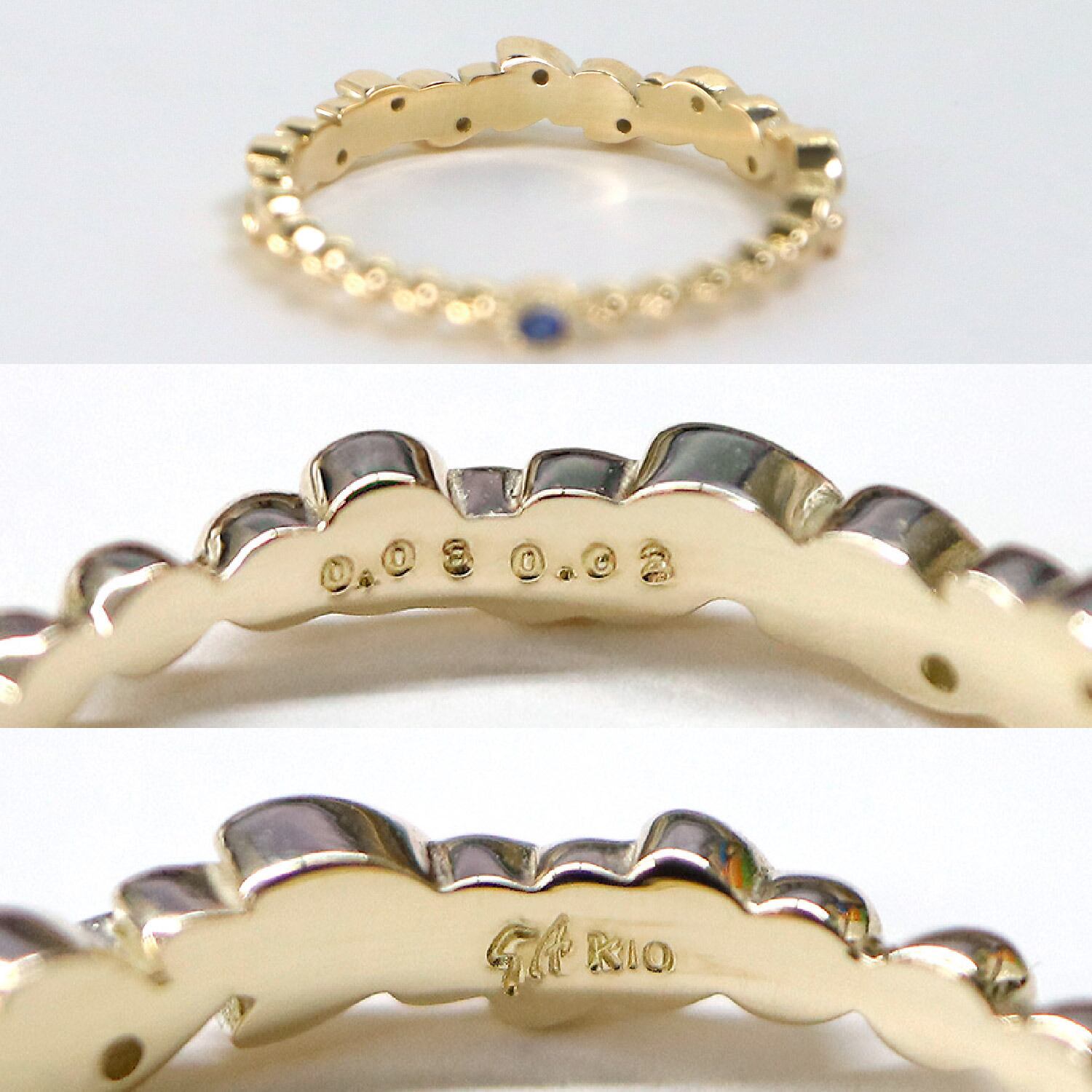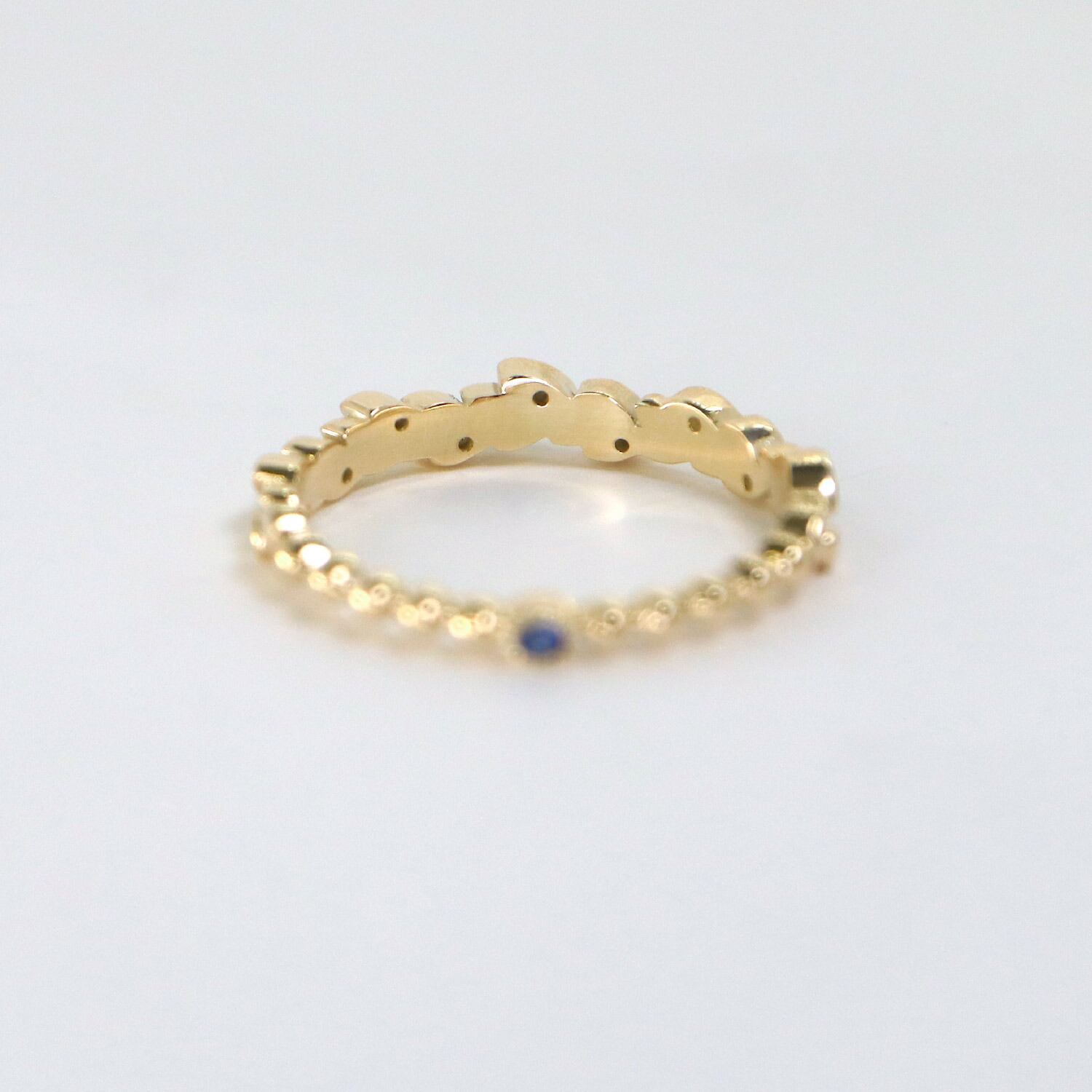 本シリーズのリングには、手のひら側に小さなサファイアをひと粒あしらっています