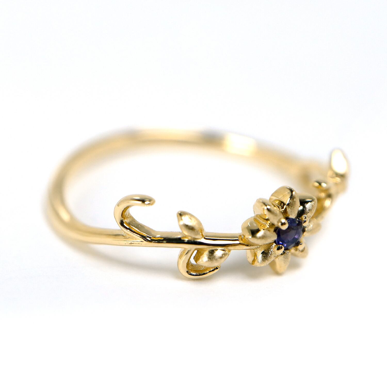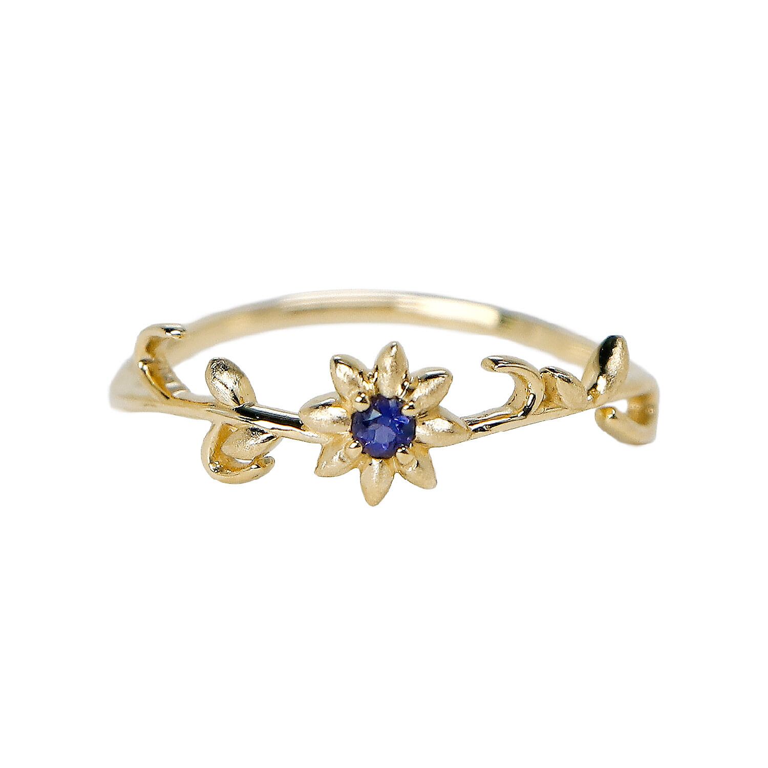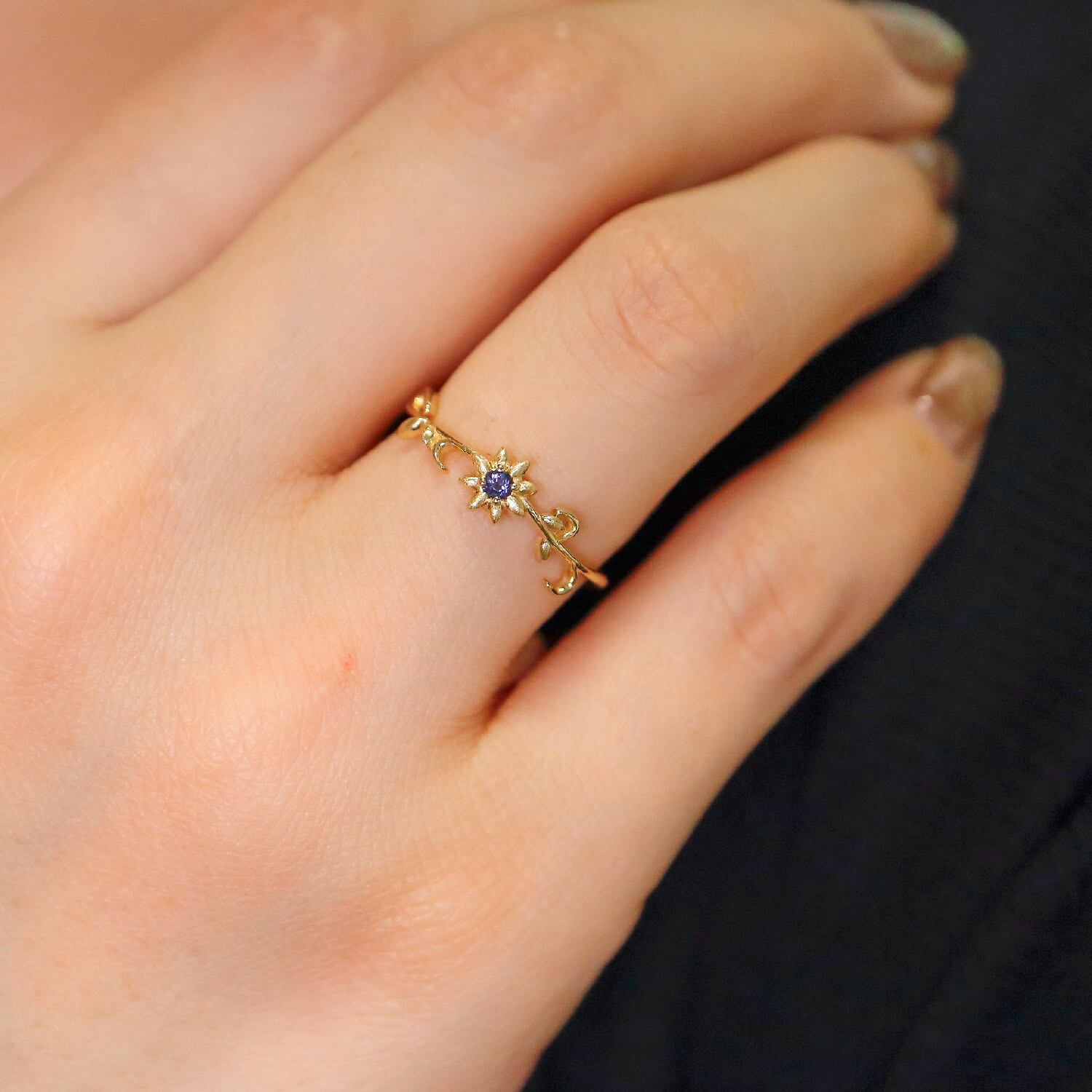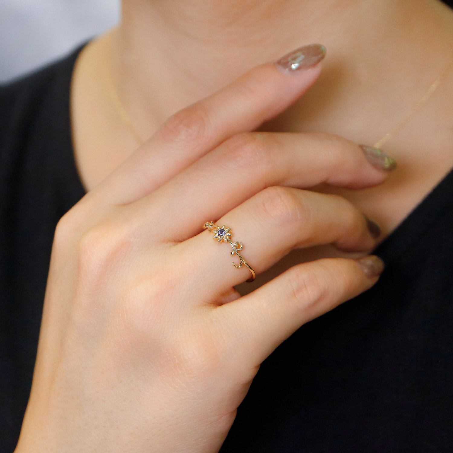 中心には深い青紫のアイオライトをあしらい、知的な輝きを添えました。