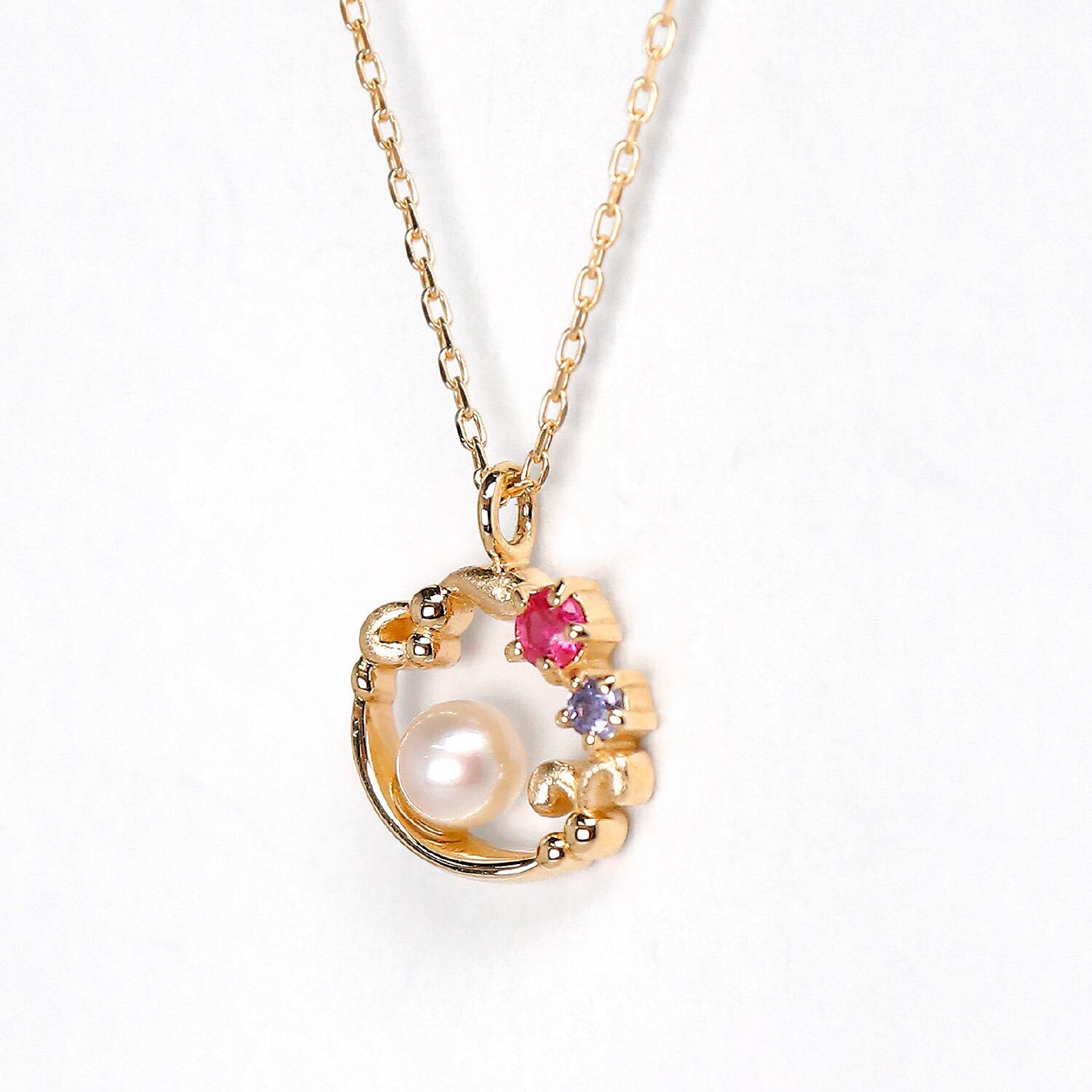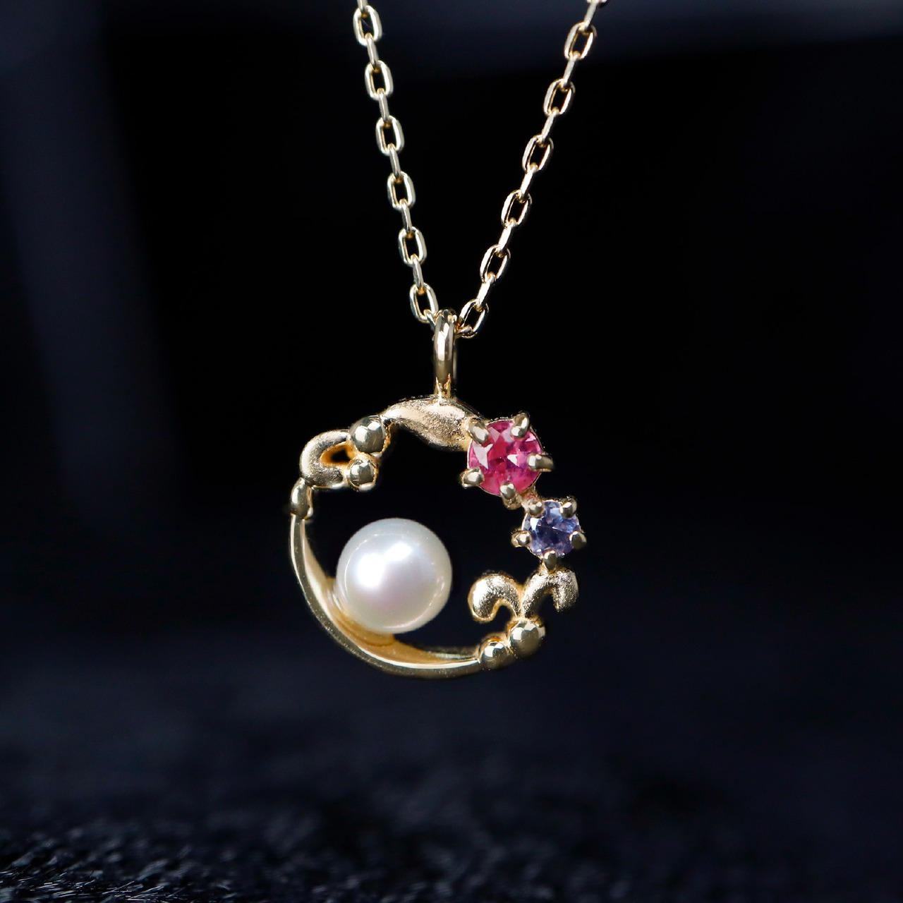 K10YG ルビー/アイオライト/淡水パール ネックレス