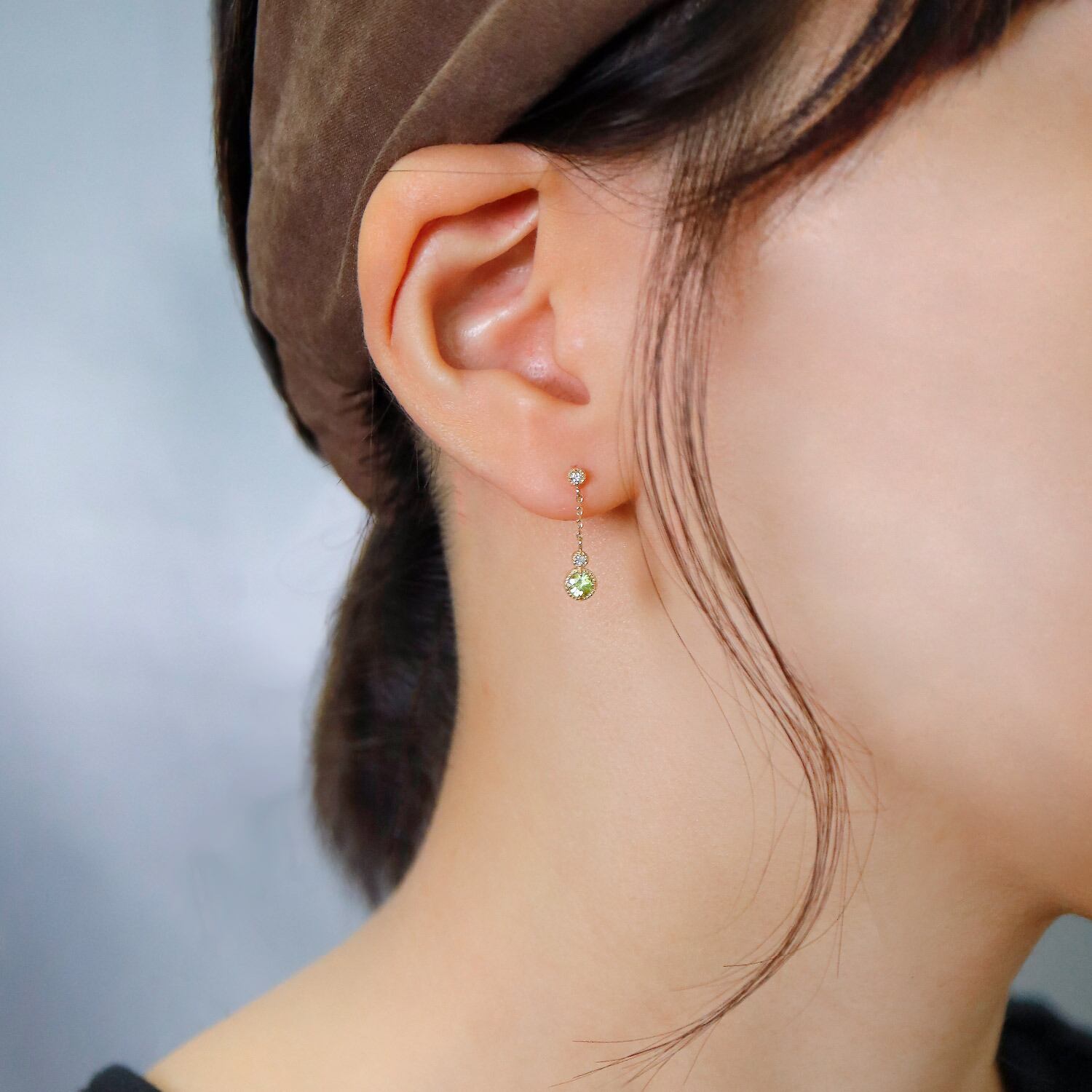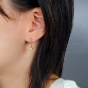 揺れるたびに虹色の光を放つスフェーン、ひとしずくの光が耳元で踊る。