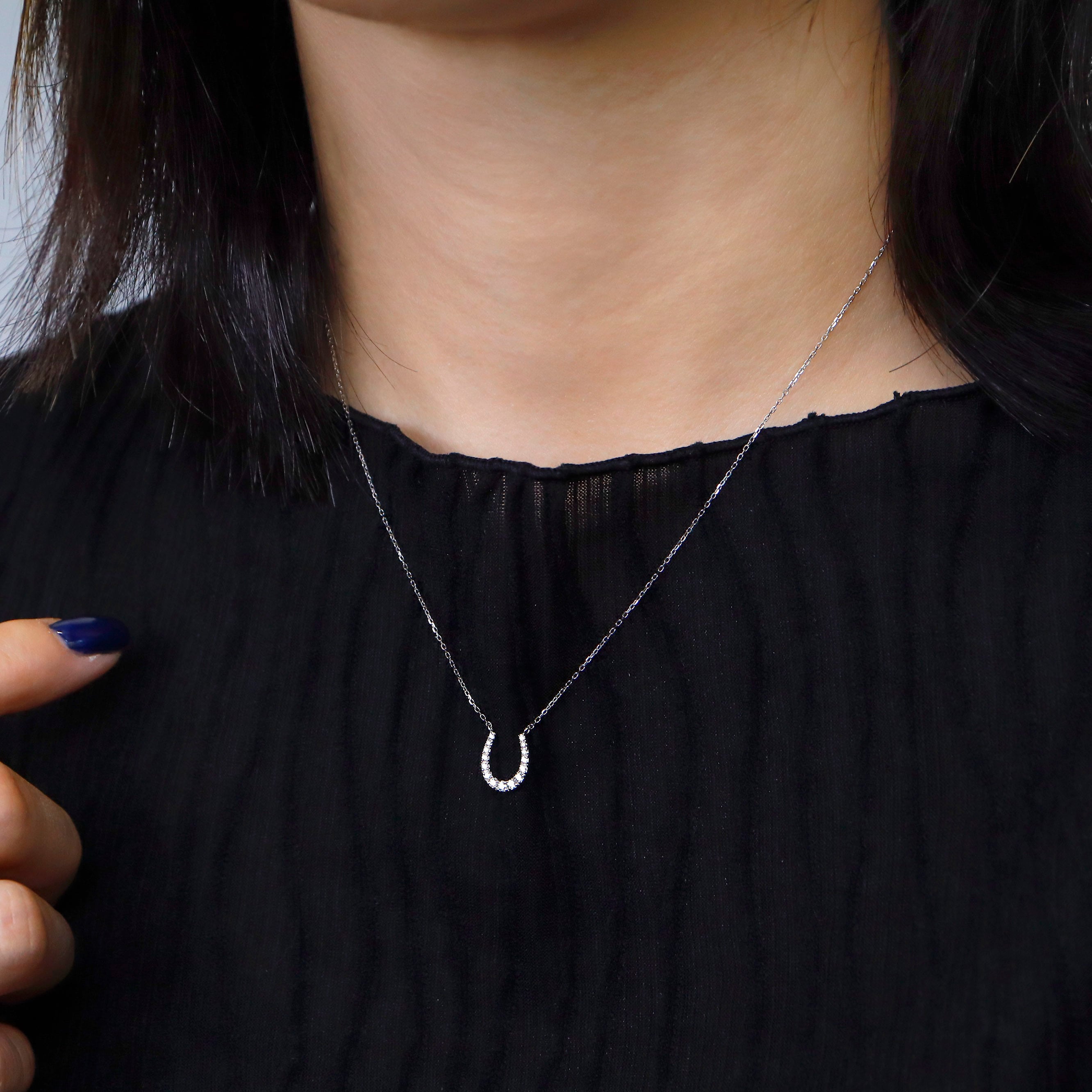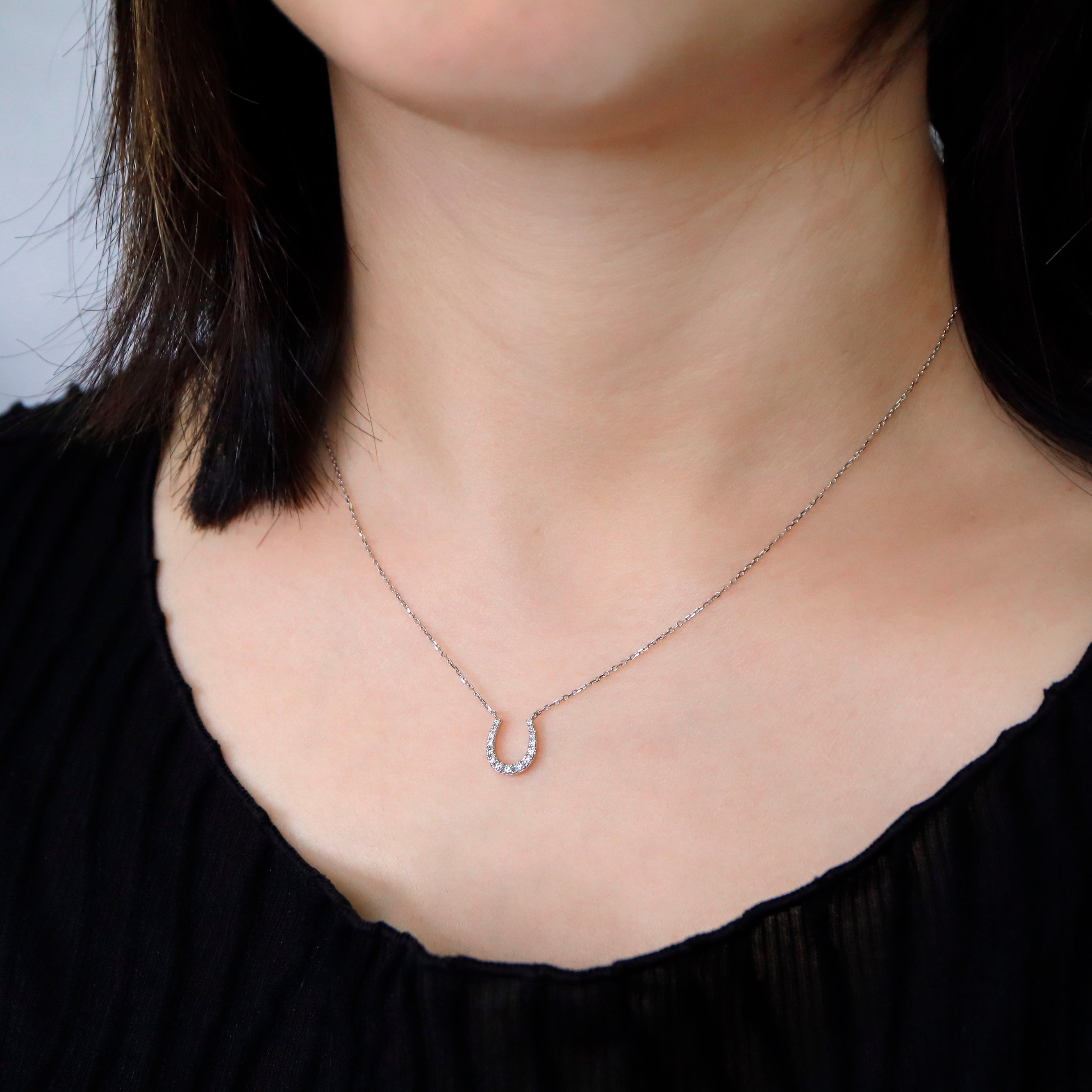 人気の馬蹄モチーフにダイヤで高級感をプラスしたネックレス。