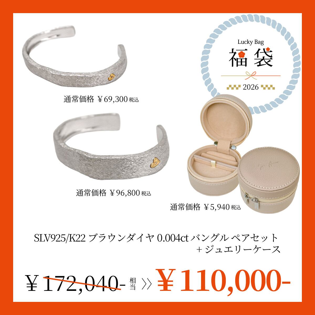 【福袋・36%OFF】SLV925/K22 ブラウンダイヤ バングルペアセット+ジュエリーケースセット