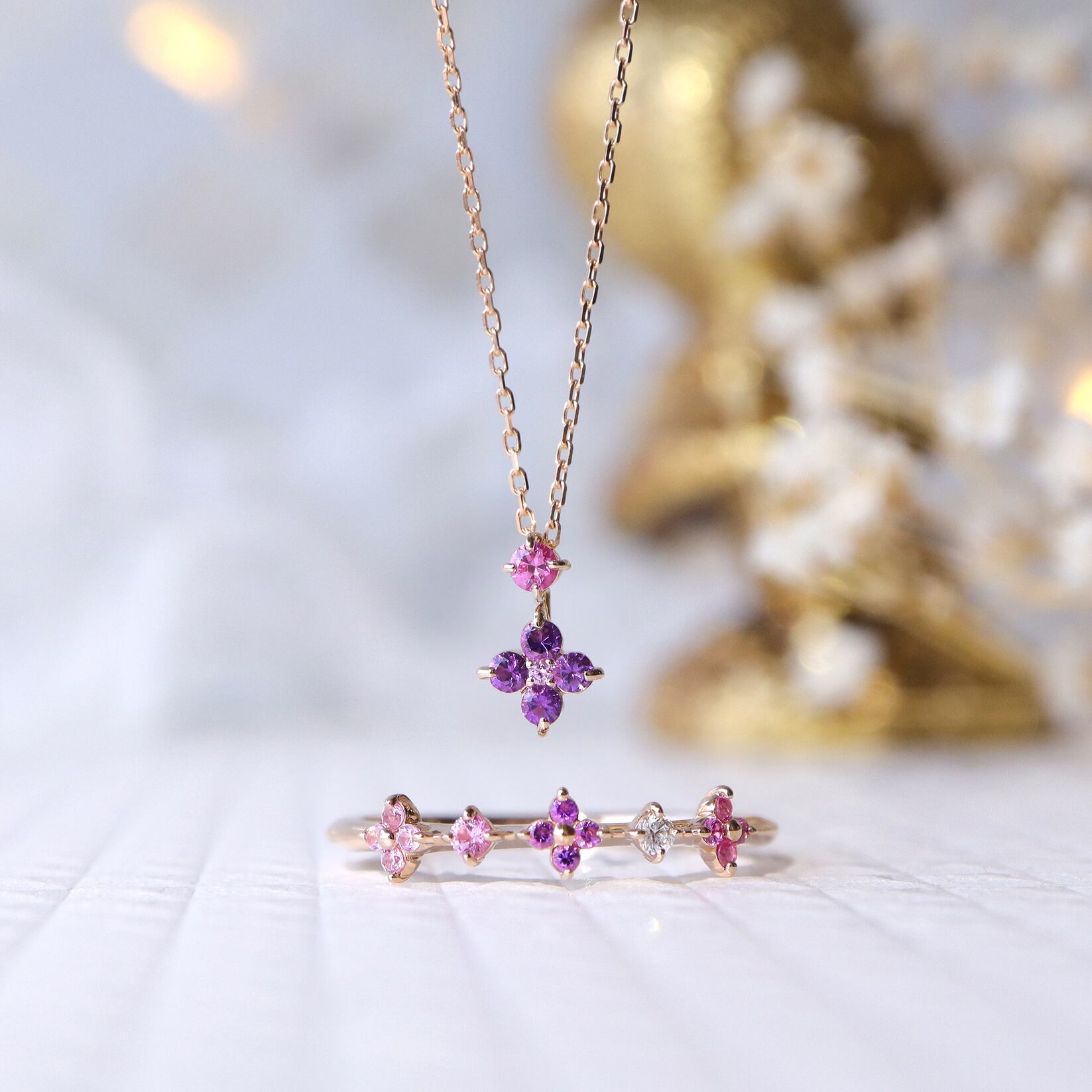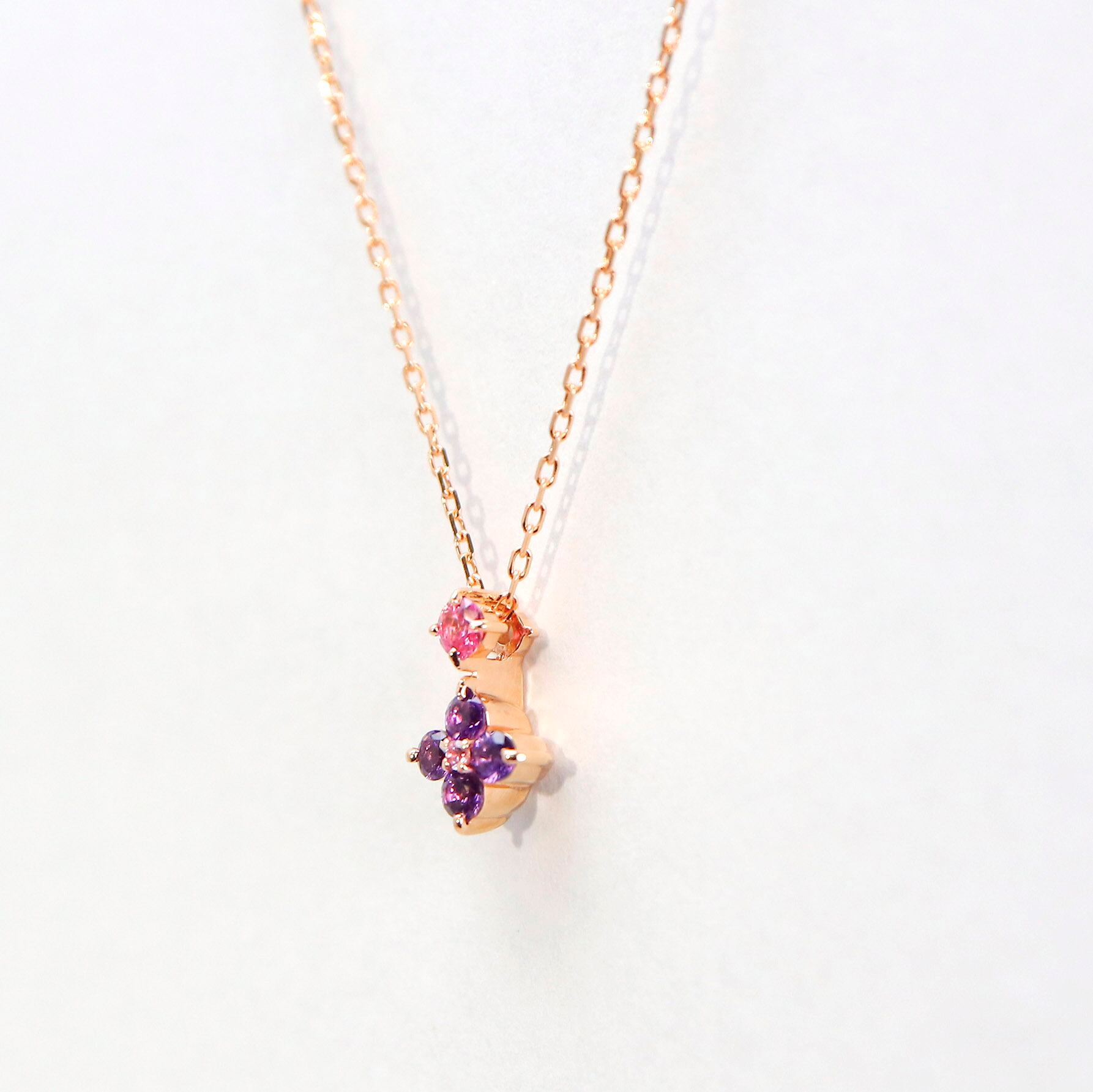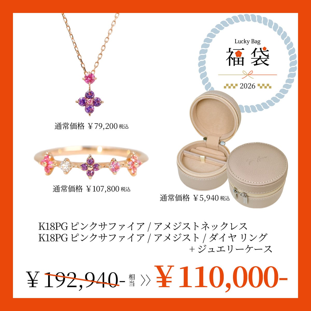 【福袋・43%OFF】K18PGピンクサファイア/アメジストネックレス+K18PGピンクサファイア/アメジスト/ダイヤ リング+ジュエリーケースセット