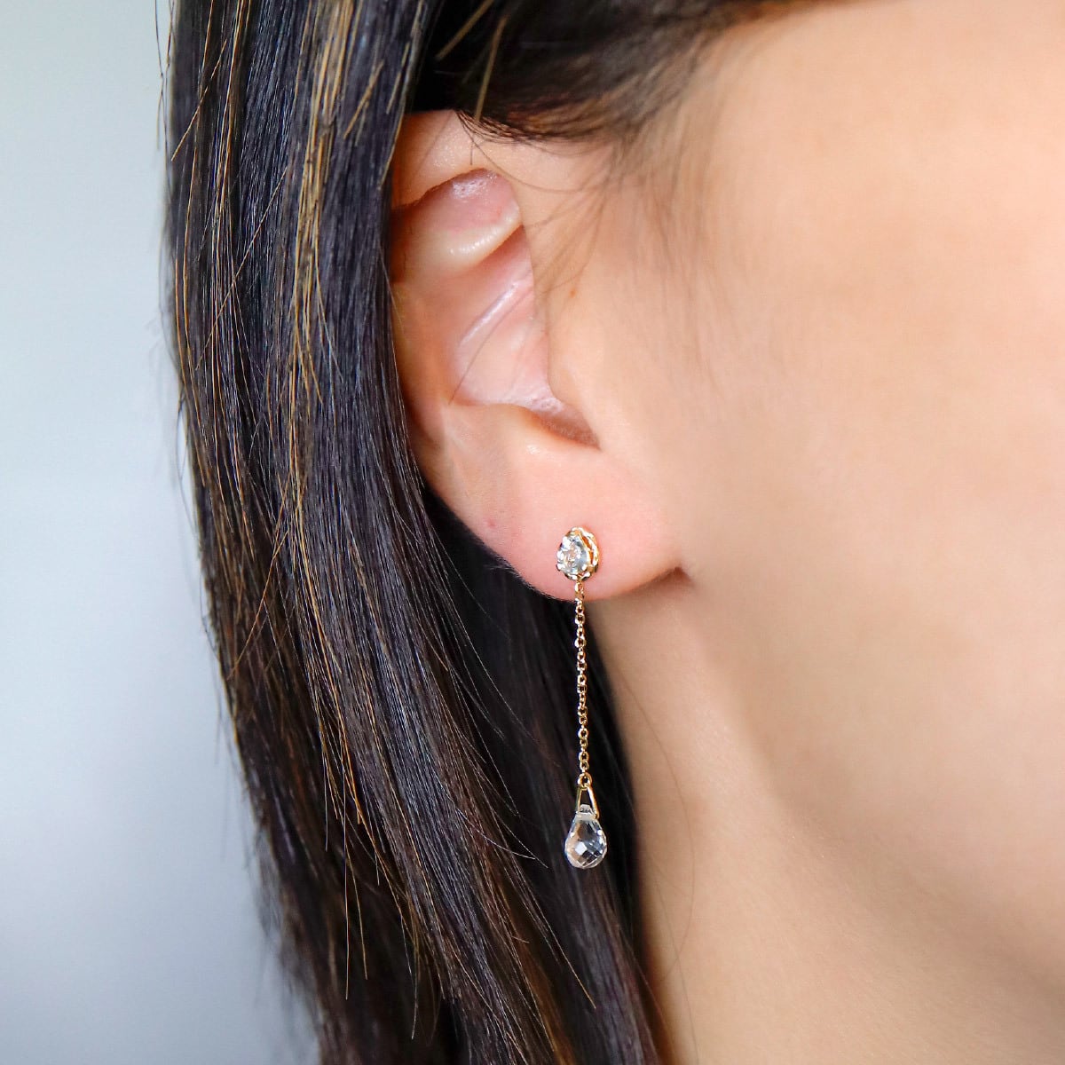 雫型のアクアマリンが、耳元で静かにきらめくスタッドピアス。