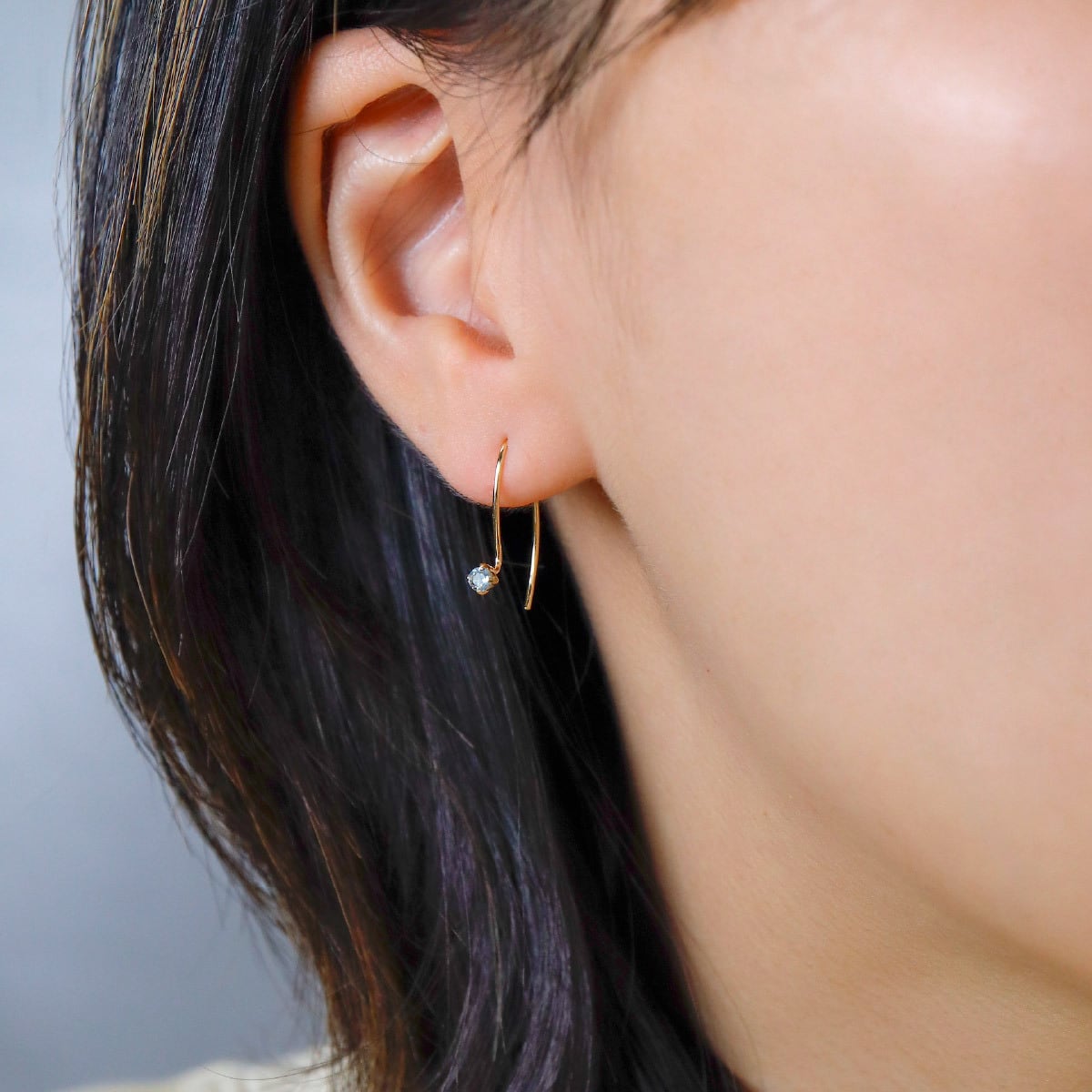 アクアマリンは人魚が人間の船乗りへ恋をして、流した涙が宝石になったという物語を持つ石。澄んだ青色と透明感が、動くたびに軽やかな輝きを添えます。