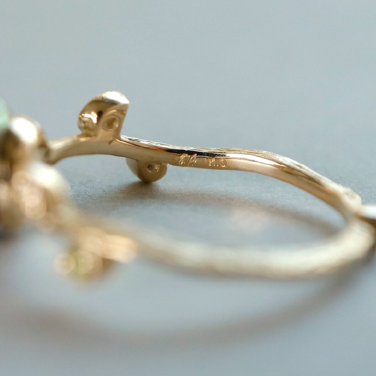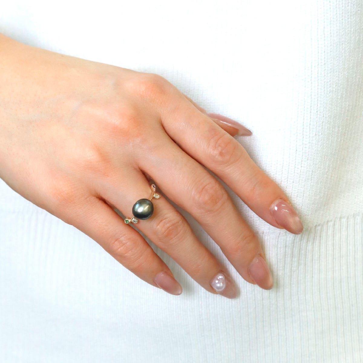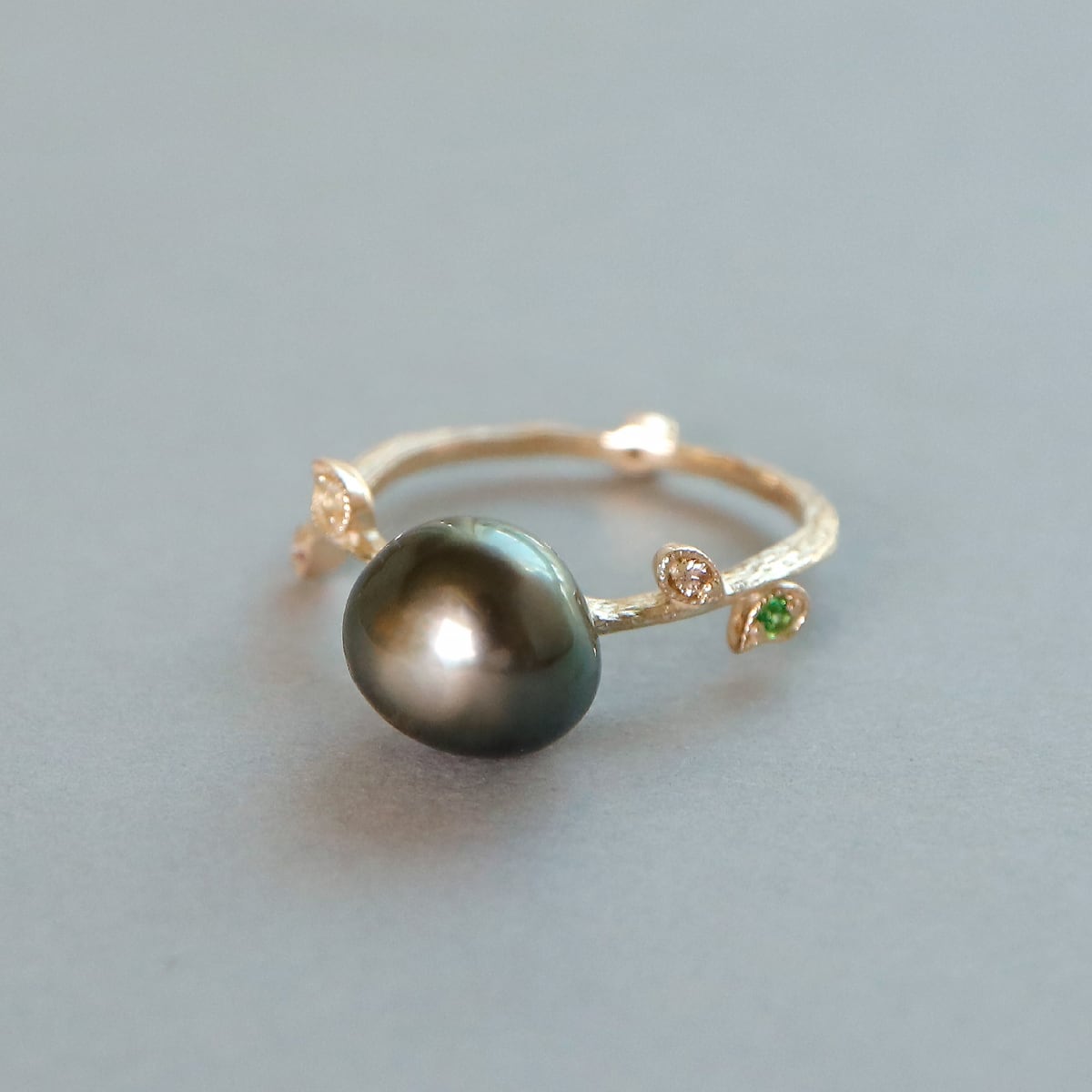 〈No.2〉K10YG ナンヨウパール/アメジスト/ローズカットダイヤ/ブラウンダイヤ/グリーンガーネット リング