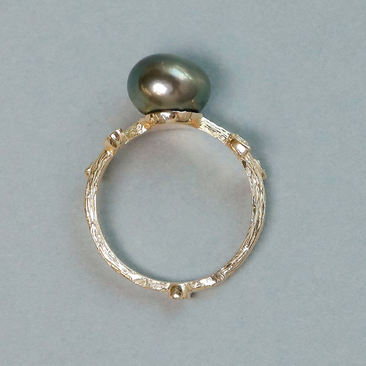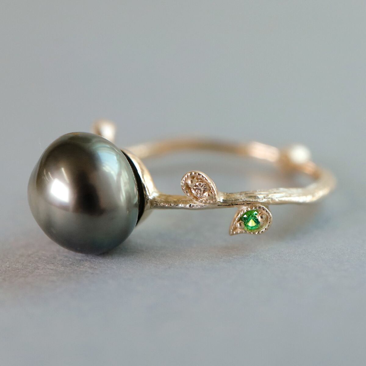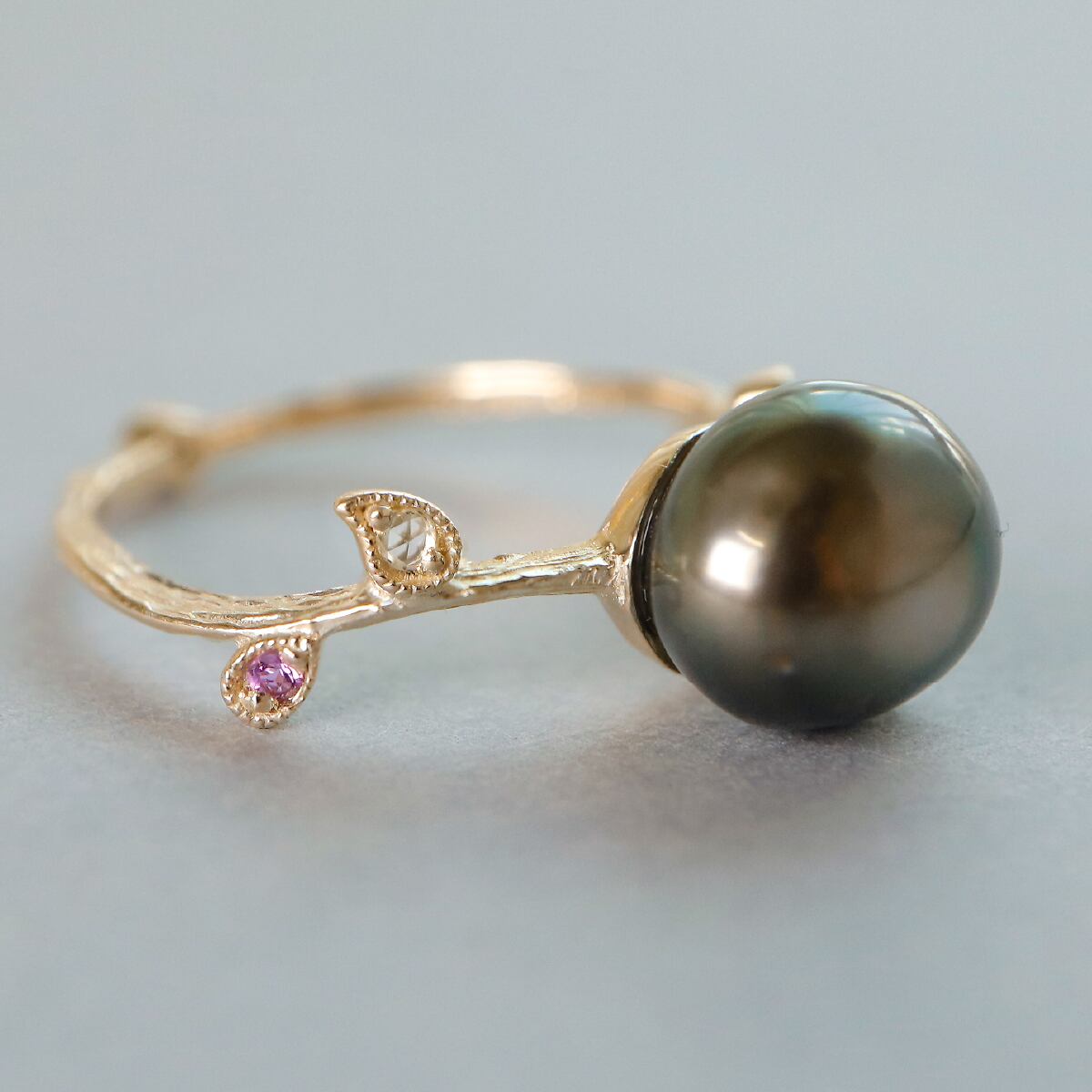 〈No.2〉K10YG ナンヨウパール/アメジスト/ローズカットダイヤ/ブラウンダイヤ/グリーンガーネット リング