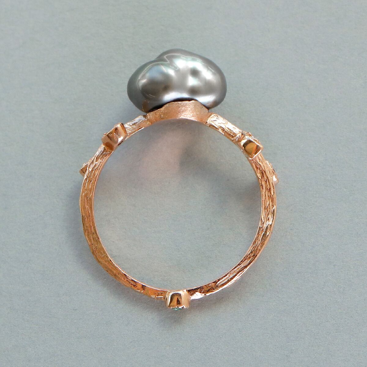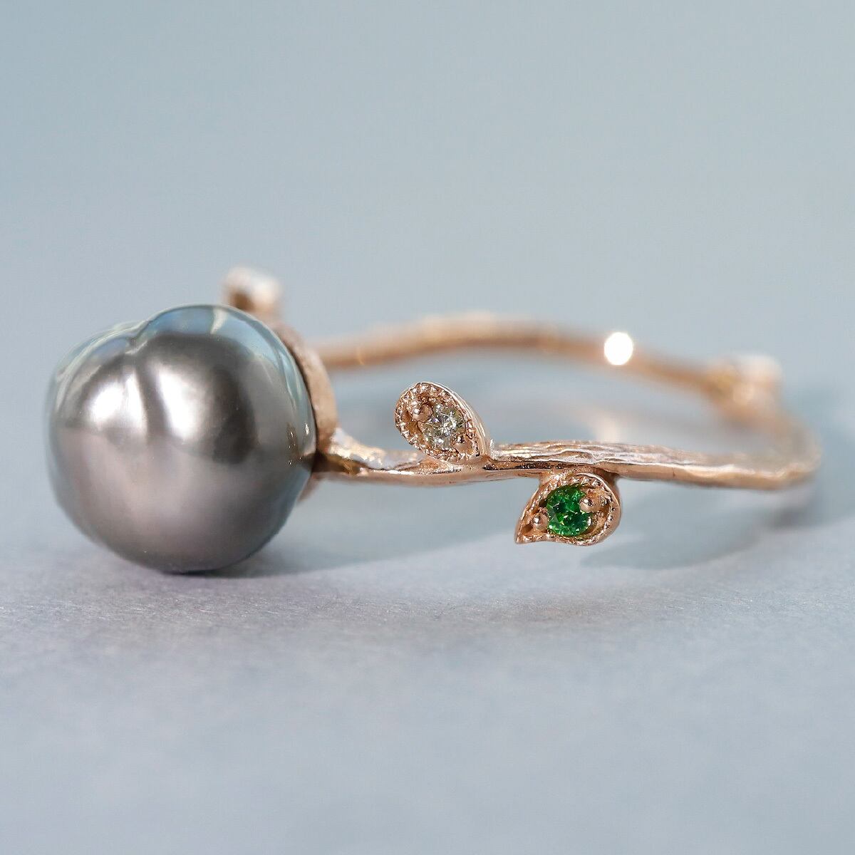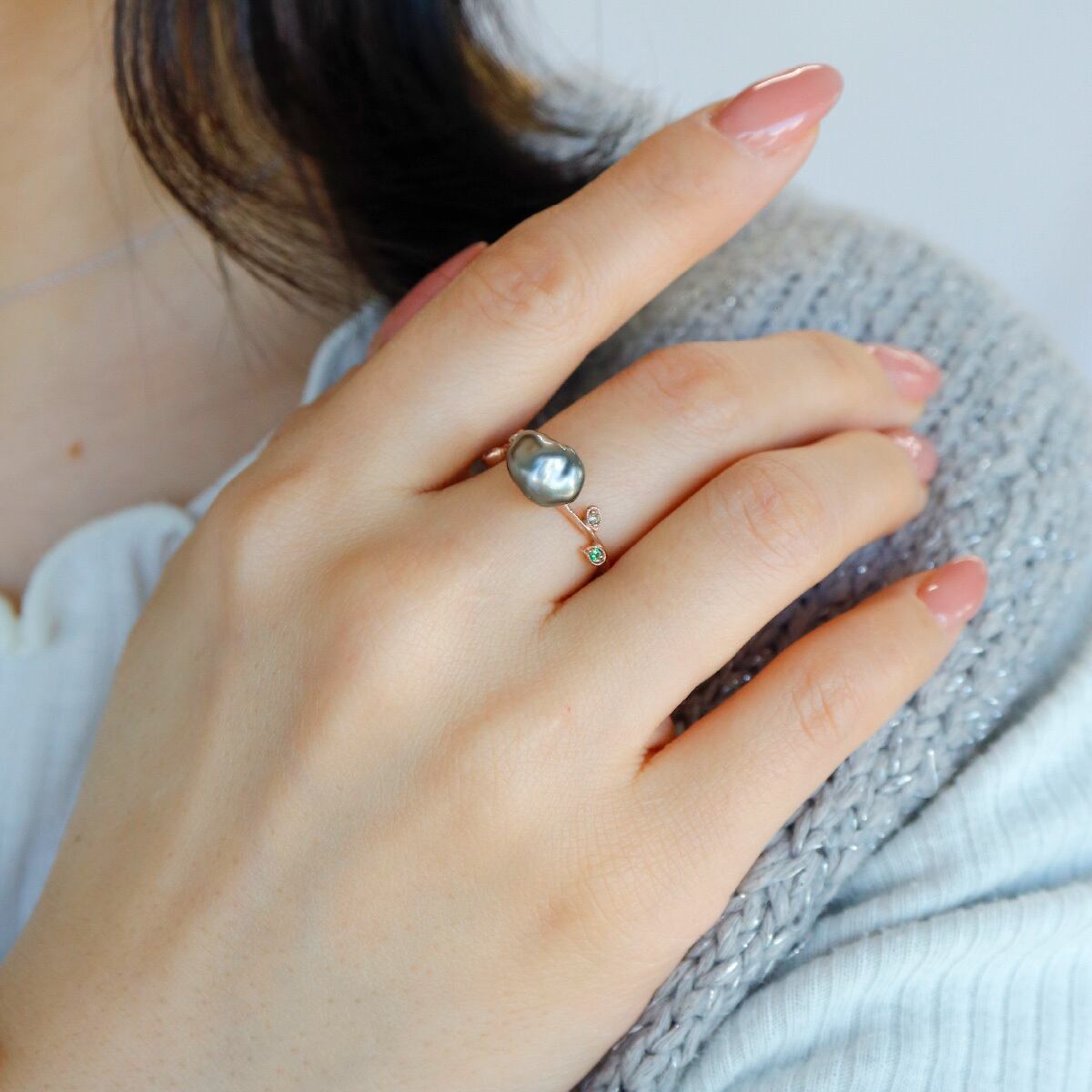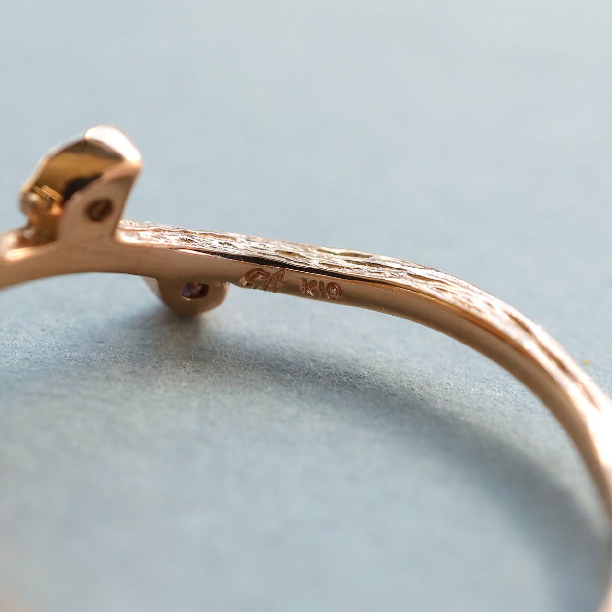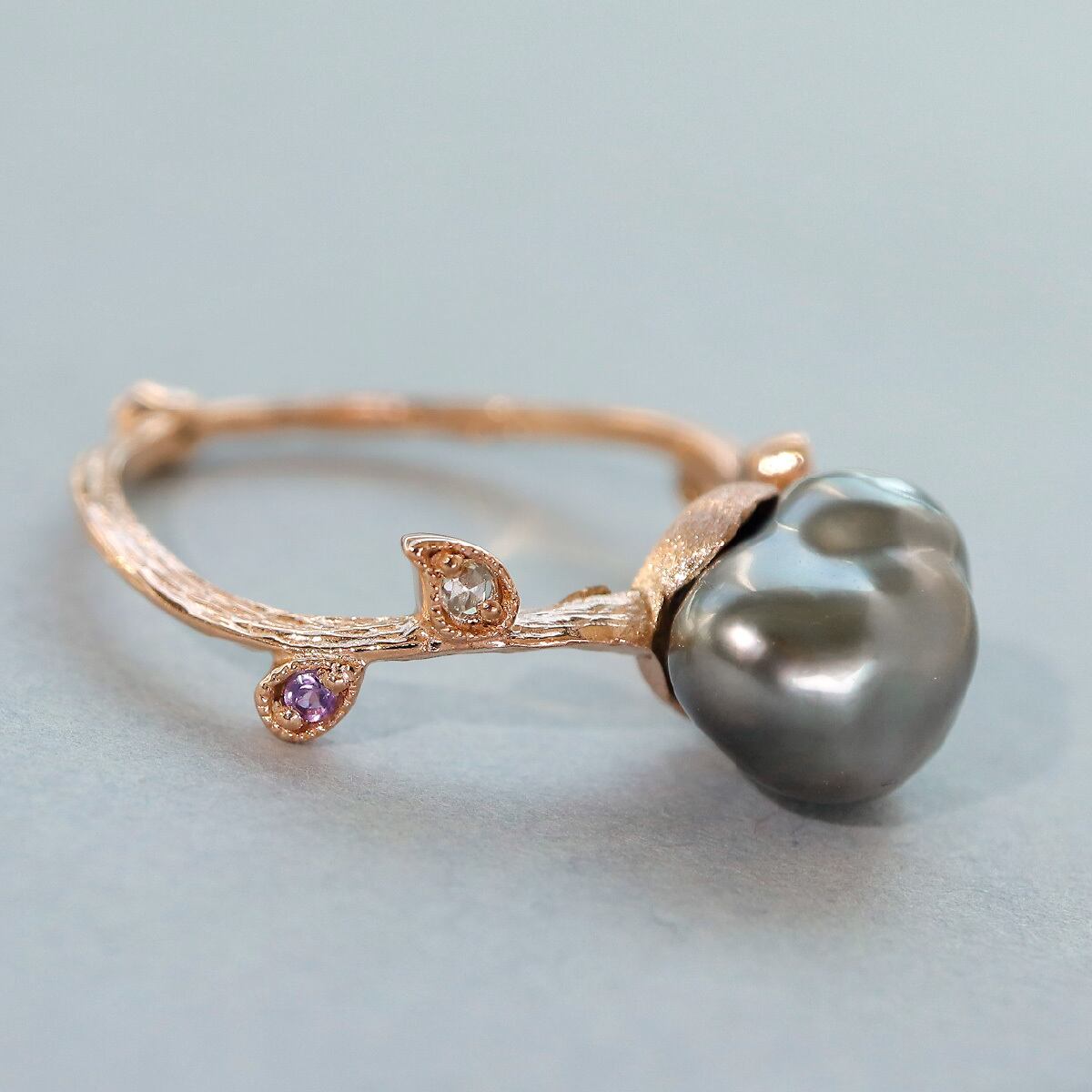 〈No.5〉K10PG ナンヨウパール/アメジスト/ローズカットダイヤ/グリーンガーネット リング